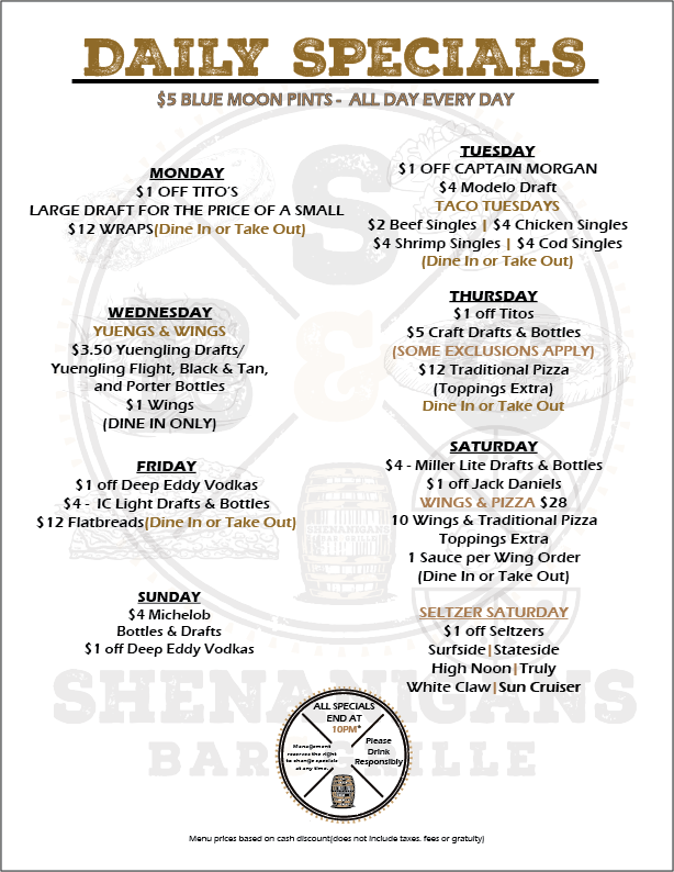 Daily Specials - Shenanigans Bar & Grille